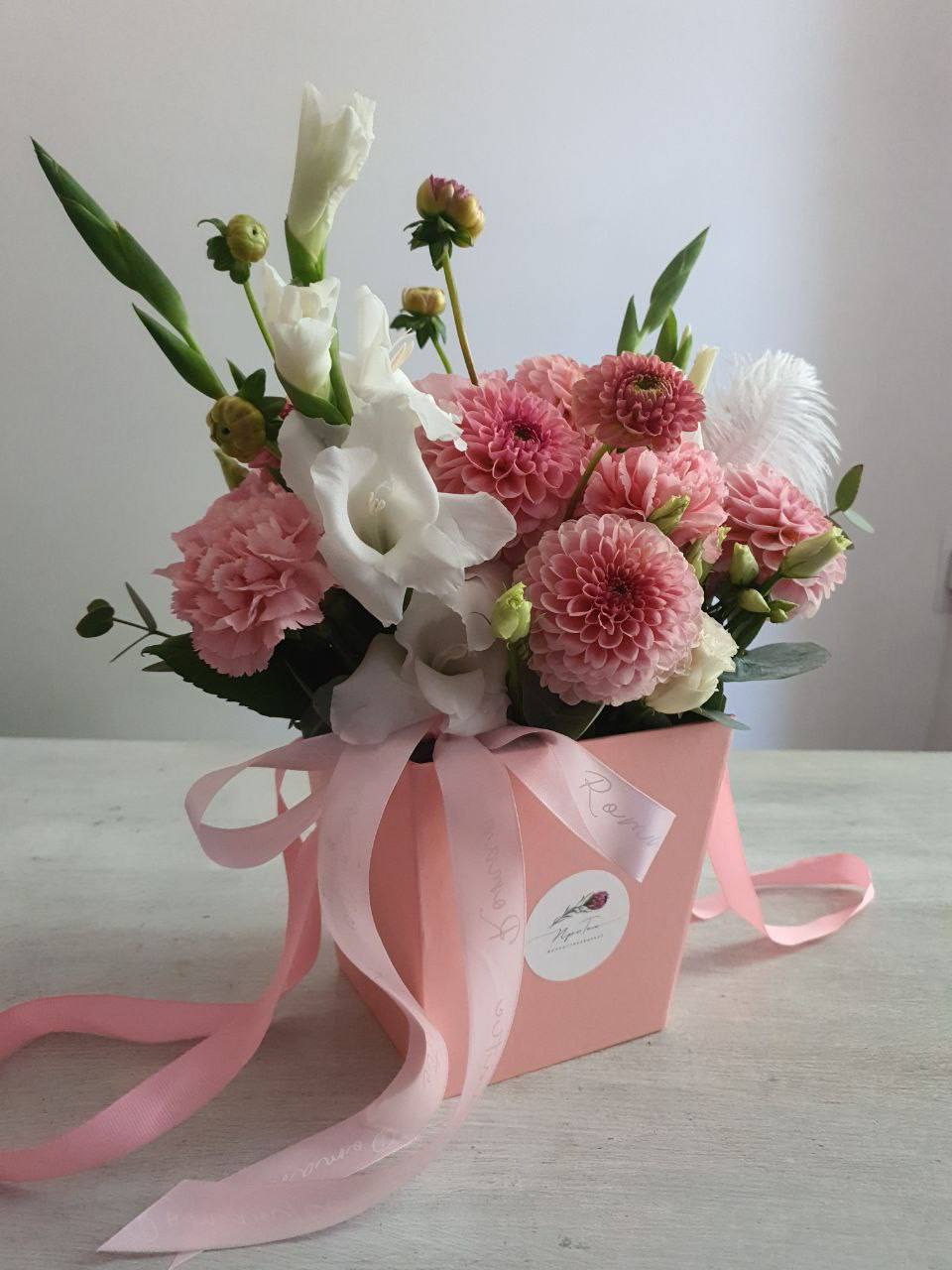 Сумочка из георгин, диантусов, эустомы и гладиолусов quantity